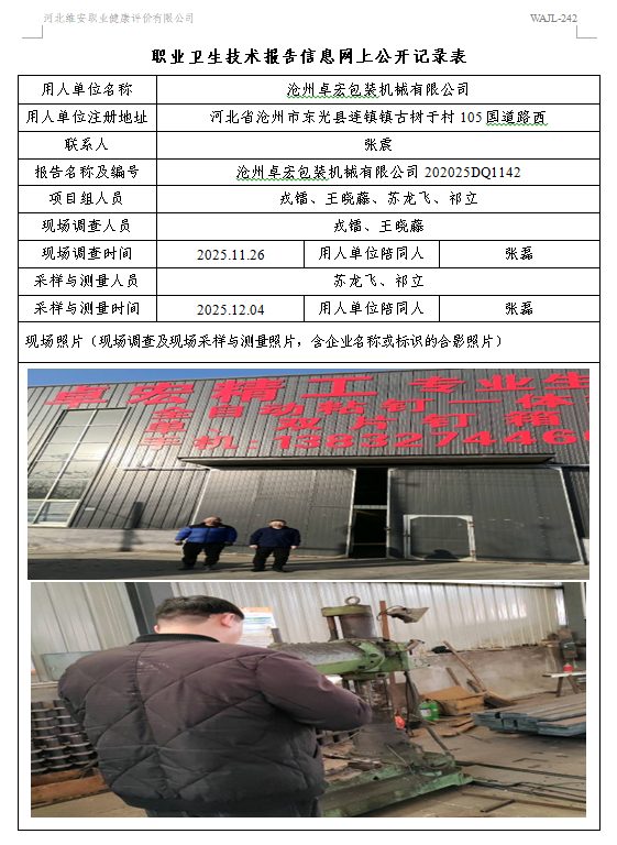 2025年沧州卓宏包装机械有限公司定期检测网上公示