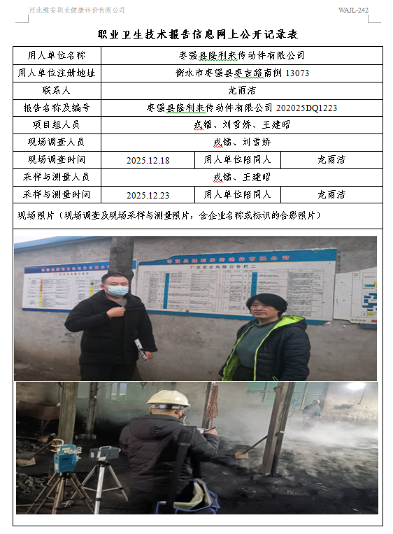 2025年枣强县隆利来传动件有限公司定期检测网上公示