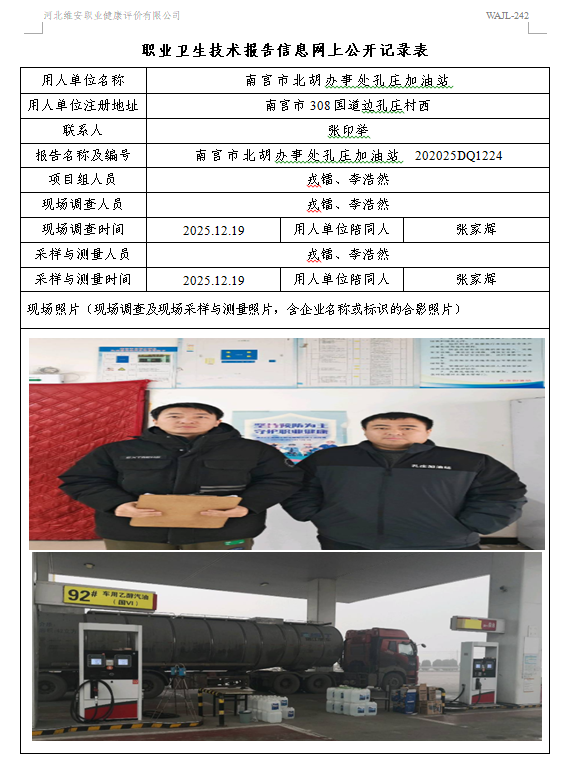 2025年南宫市北胡办事处孔庄加油站定期检测网上公示