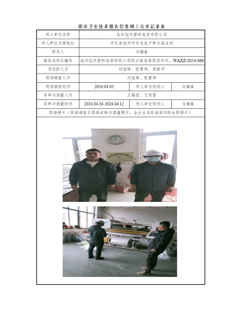 沧州冠杰塑料包装有限公司职业病危害现状评价