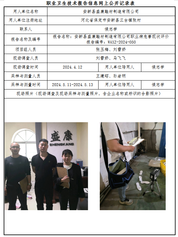 安新县盛康鞋材制造有限公司职业病危害现状评价