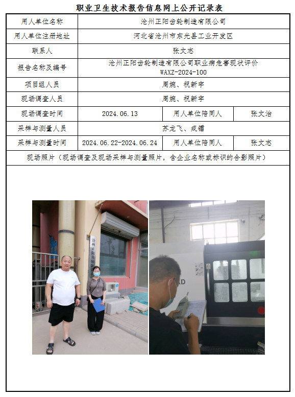 沧州正阳齿轮制造有限公司职业病危害现状评价