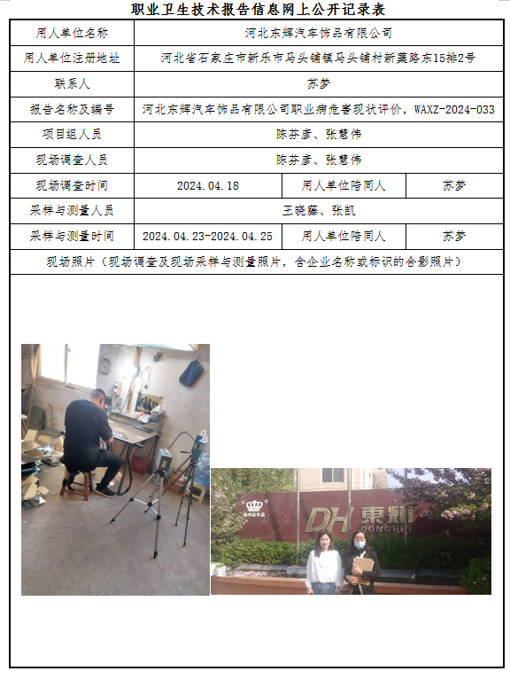河北东辉汽车饰品有限公司职业病危害现状评价