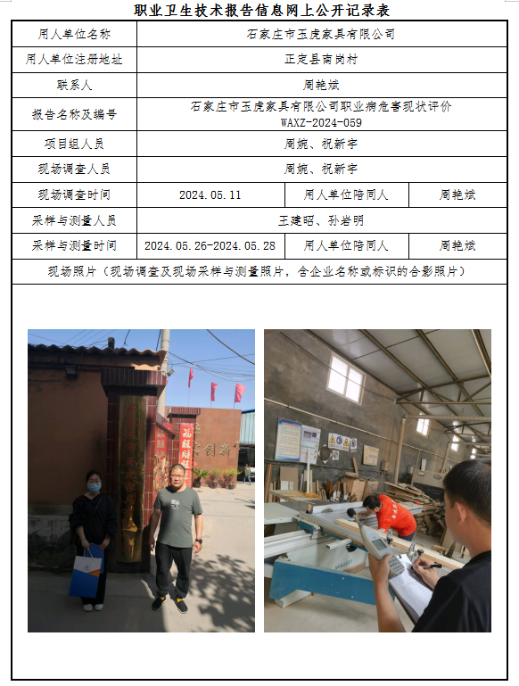石家庄市玉虎家具有限公司职业病危害现状评价