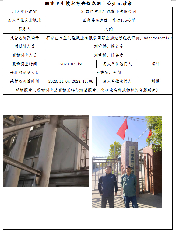 石家庄市胜利混凝土有限公司职业病危害现状评价
