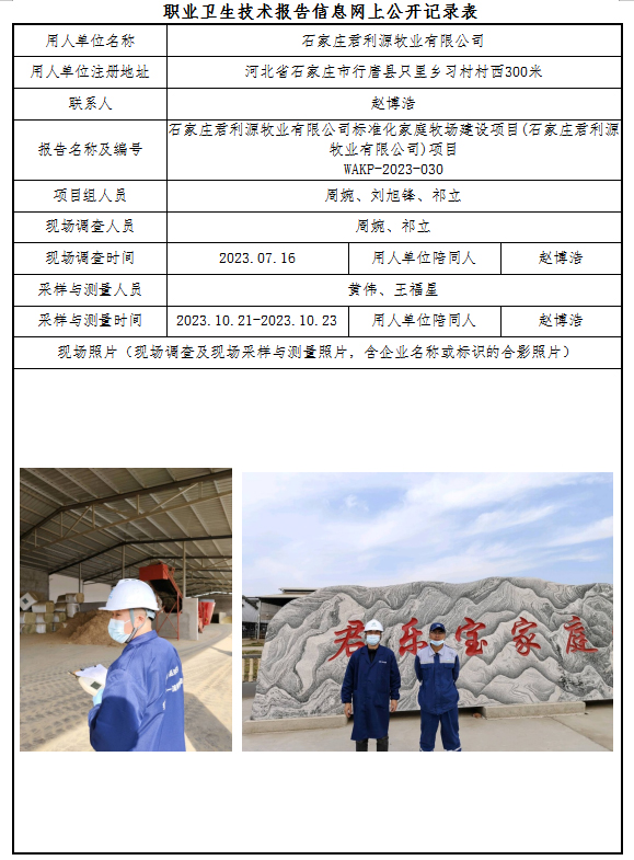 石家庄君利源牧业有限公司标准化家庭牧场建设项目(石家庄君利源牧业有限公司)项目职业病危害控制效果评价