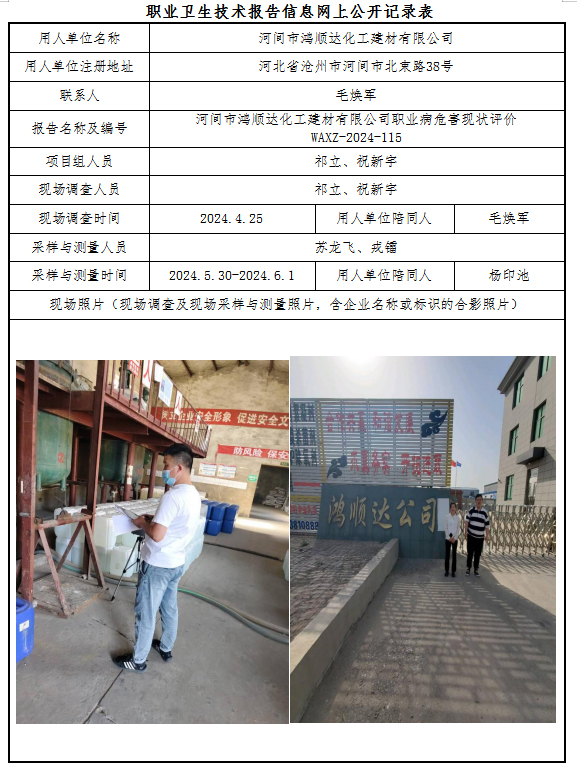 河间市鸿顺达化工建材有限公司 职业病危害现状评价