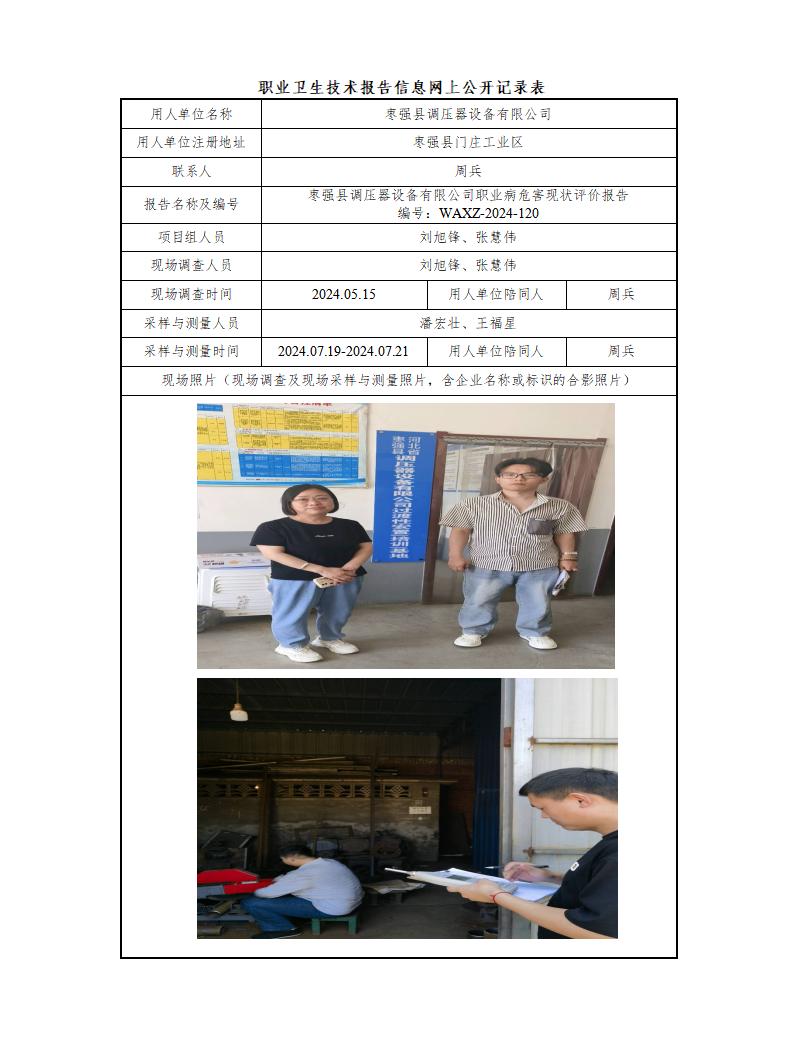 枣强县调压器设备有限公司职业病危害现状评价