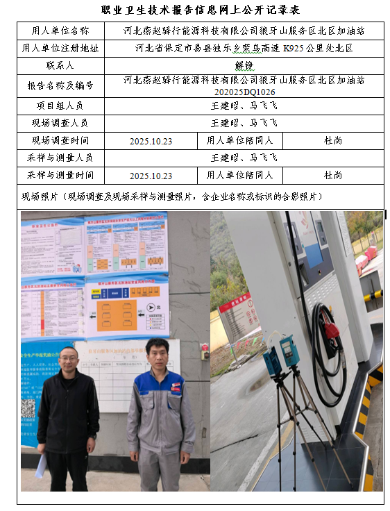 25年河北燕赵驿行能源科技有限公司狼牙山服务区北区加油站定期检测网上公示