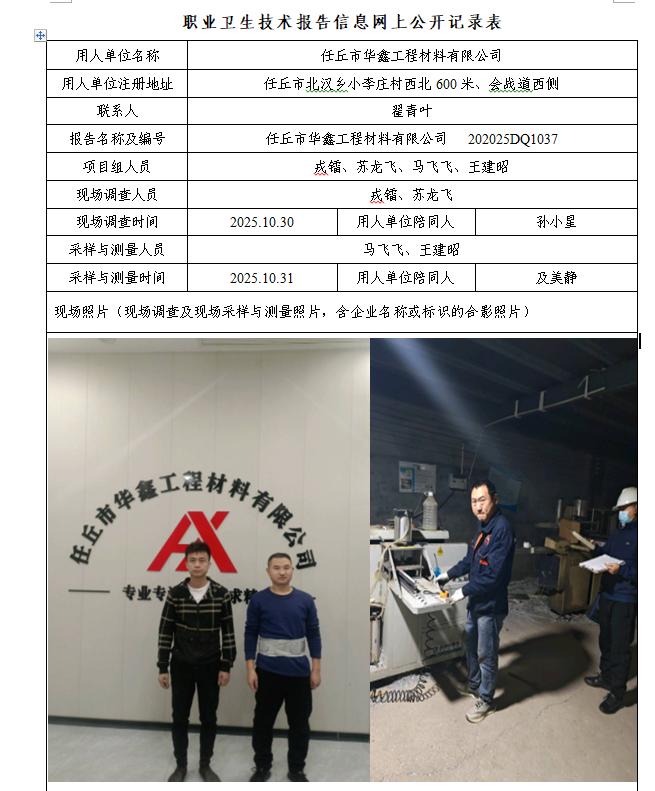 25年任丘市华鑫工程材料有限公司定期检测网上公示