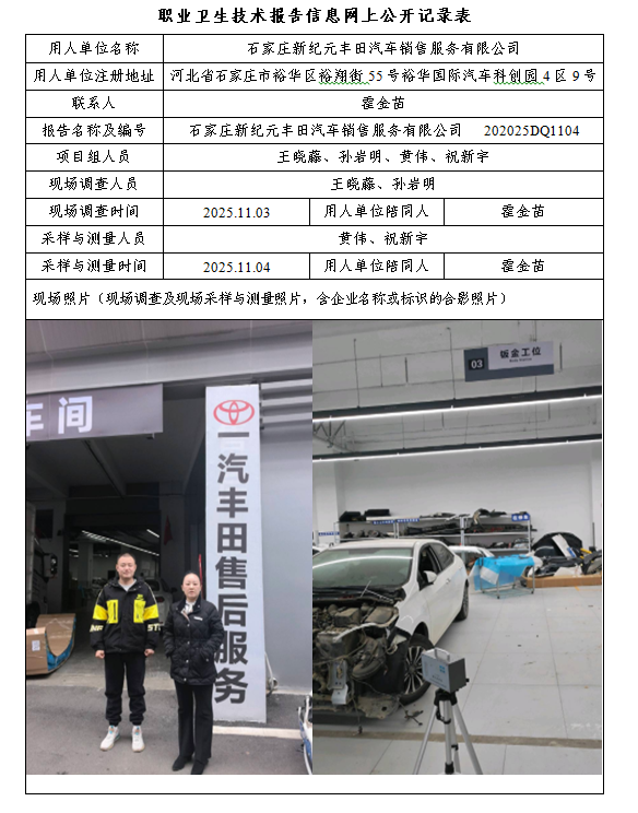25年石家庄新纪元丰田汽车销售服务有限公司定期检测网上公示