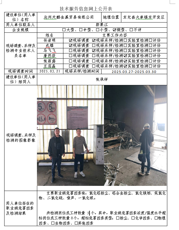 2025年沧州天鹏金属贸易有限公司定期检测网上公示