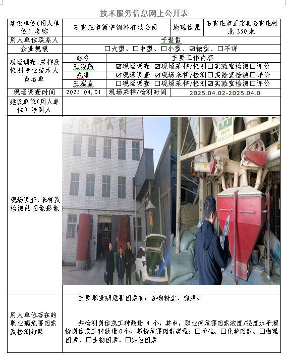 2025年石家庄市新宇饲料有限公司定期检测网上公示