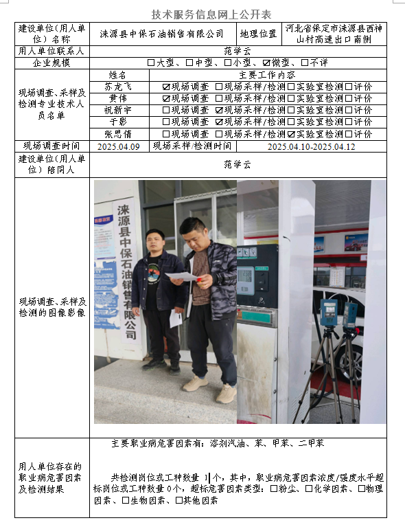 2025年涞源县中保石油销售有限公司定期检测网上公示