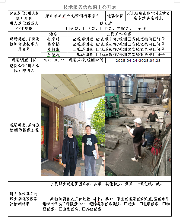 2025年唐山市丰丰冷轧带钢有限公司定期检测网上公示