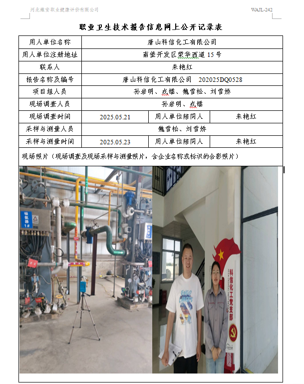 2025年唐山科信化工有限公司定期检测网上公示
