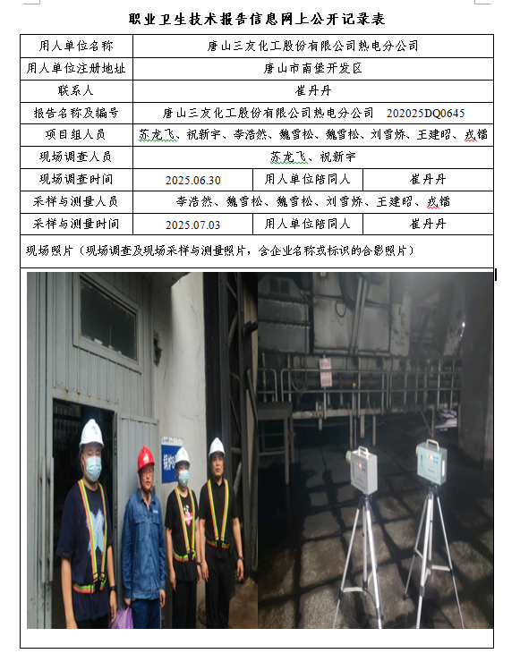 2025年唐山三友化工股份有限公司热电分公司定期检测网上公示
