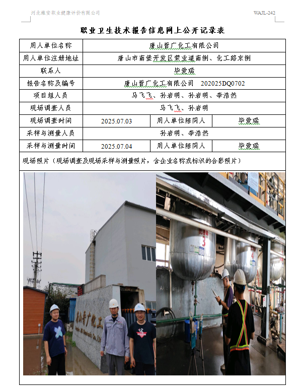 2025年唐山晋广化工有限公司定期检测网上公示