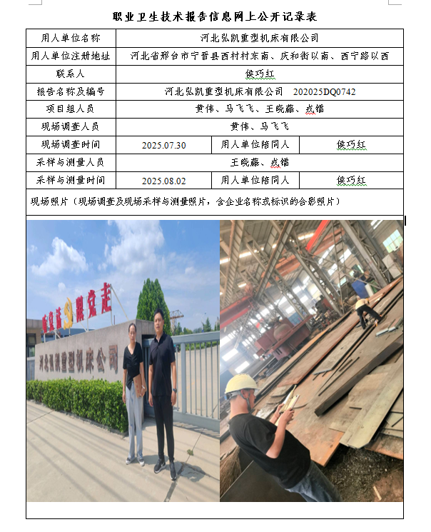 2025年河北弘凯重型机床有限公司定期检测网上公示