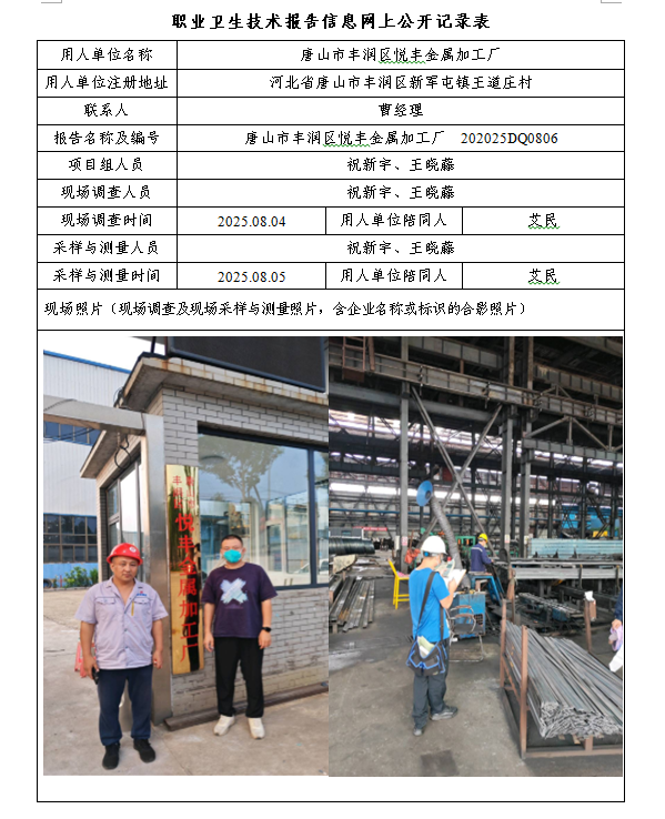 2025年唐山市丰润区悦丰金属加工厂定期检测网上公示