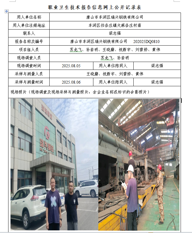 2025年唐山市丰润区瑞兴钢铁有限公司定期检测网上公示