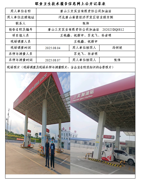 2025年唐山三友实业有限责任公司加油站定期检测网上公示