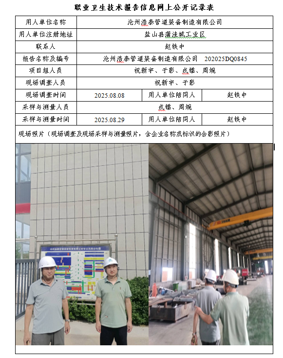 2025年沧州浩泰管道装备制造有限公司定期检测网上公示