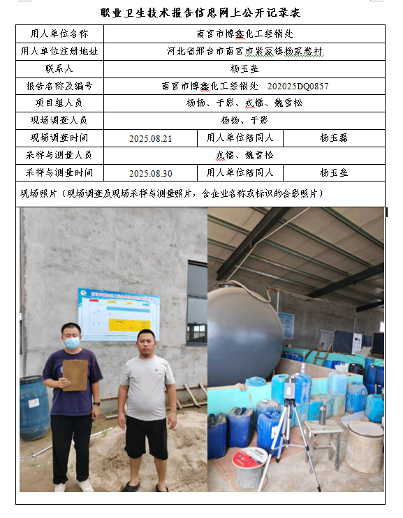 2025年南宫市博鑫化工经销处定期检测网上公示