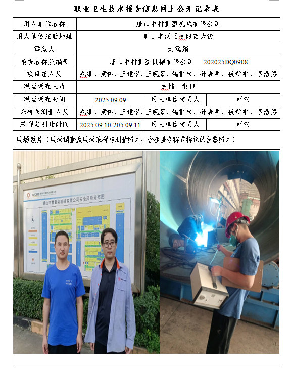2025年唐山中材重型机械有限公司定期检测网上公示
