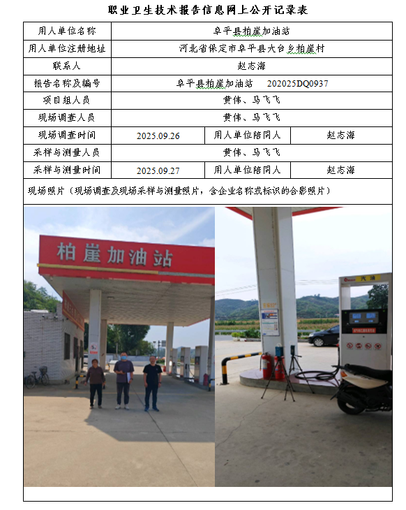 2025年阜平县柏崖加油站定期检测网上公示