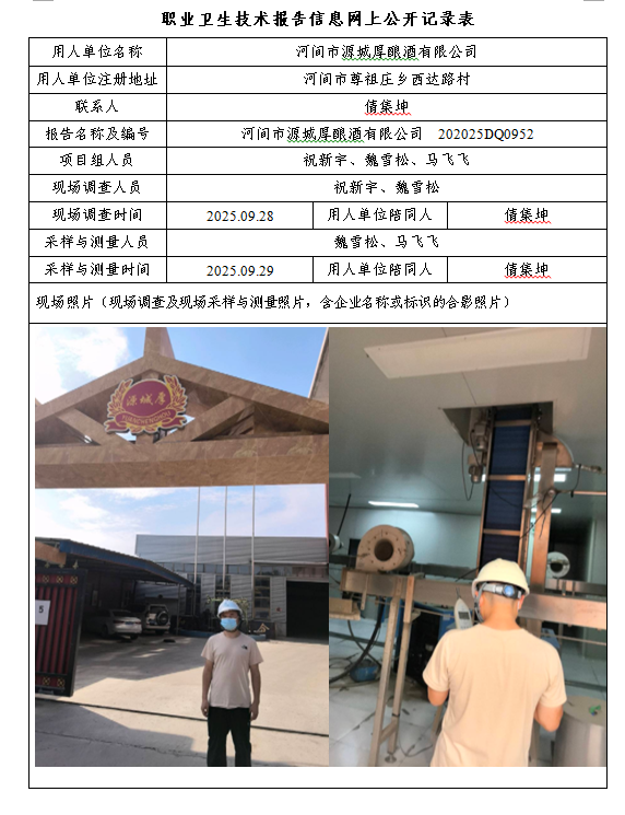 2025年河间市源城厚酿酒有限公司定期检测网上公示