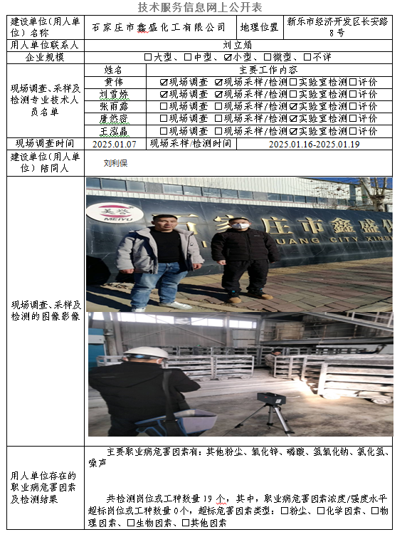 2025年石家庄市鑫盛化工有限公司定期检测网上公示