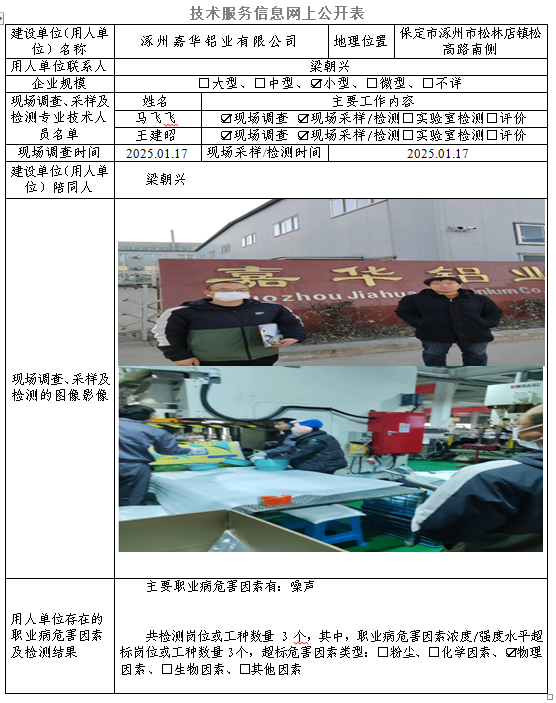 2025年涿州嘉华铝业有限公司定期检测网上公示