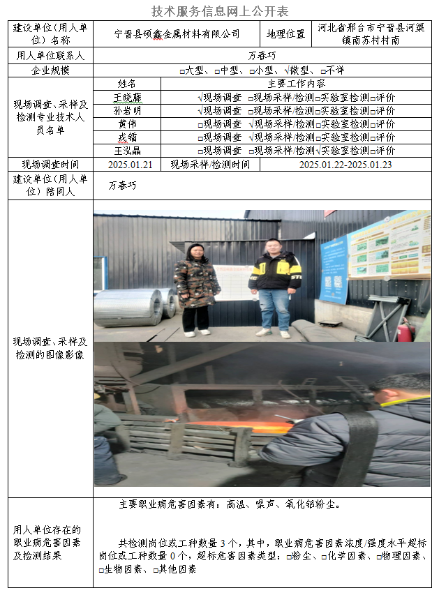2025年宁晋县硕鑫金属材料有限公司定期检测网上公示