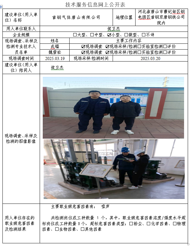 2025年首钢气体唐山有限公司定期检测网上公示