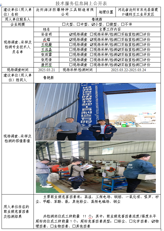 2025年沧州海洋防爆特种工具制造有限公司定期检测网上公示