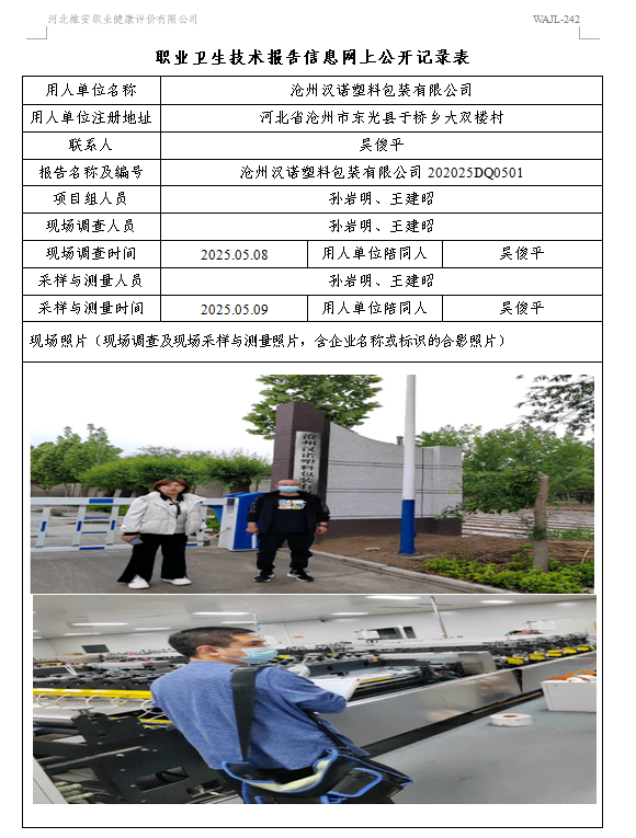 2025年沧州汉诺塑料包装有限公司定期检测