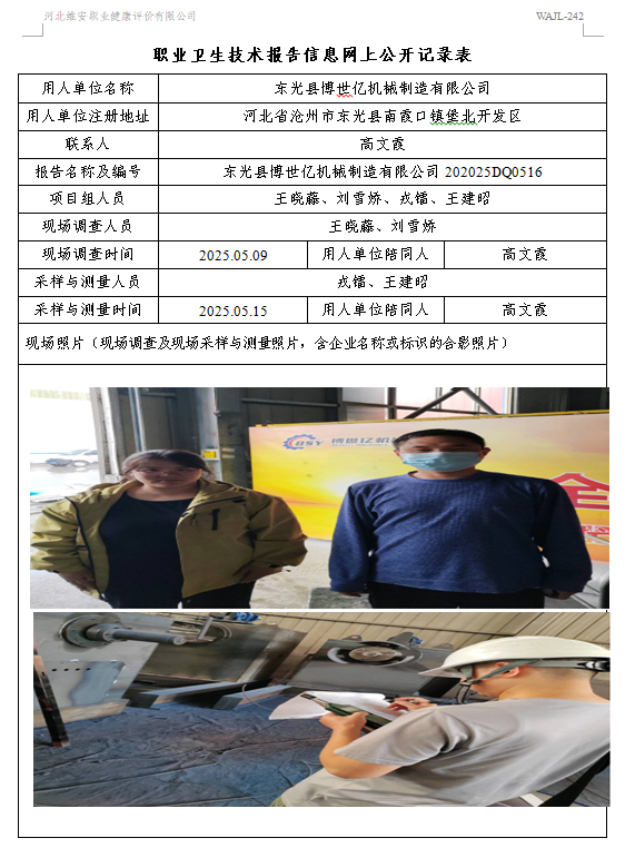 2025年东光县博世亿机械制造有限公司定期检测