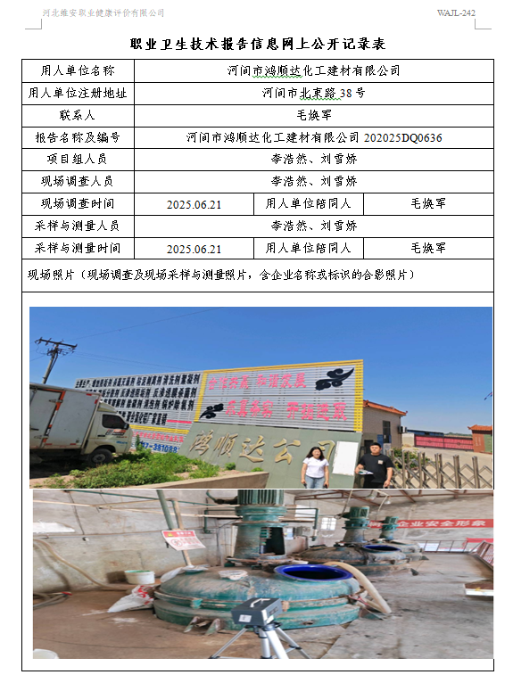 2025年河间市鸿顺达化工建材有限公司定期检测