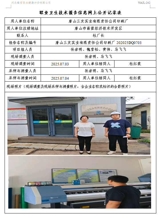 2025年唐山三友实业有限责任公司印刷厂定期检测