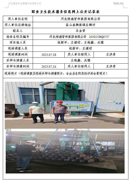 2025年河北恒通管件集团有限公司定期检测