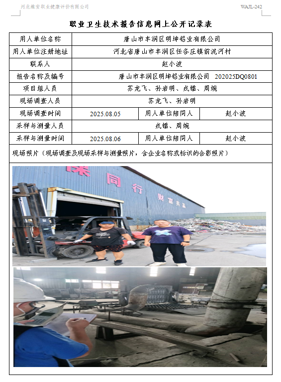 2025年唐山市丰润区明坤铝业有限公司定期检测
