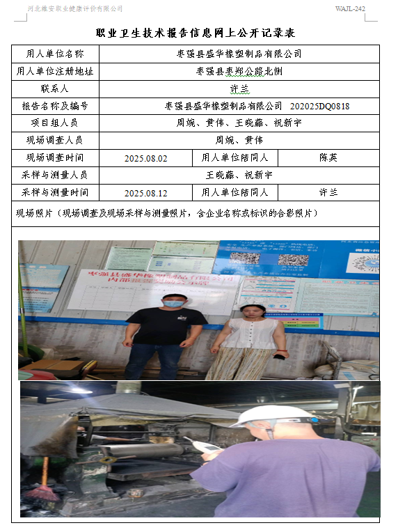 2025年枣强县盛华橡塑制品有限公司定期检测