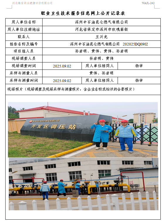 2025年涿州中石油昆仑燃气有限公司定期检测