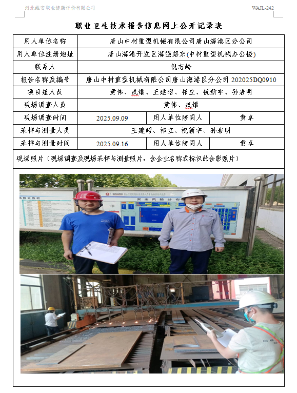 2025年唐山中材重型机械有限公司唐山海港区分公司定期检测