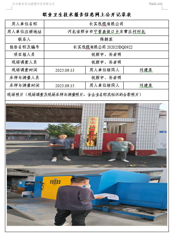 2025年长实线缆有限公司定期检测