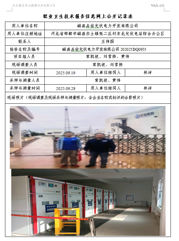 2025年磁县品佑光伏电力开发有限公司定期检测
