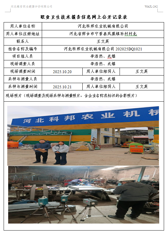 2025年河北科邦农业机械有限公司定期检测
