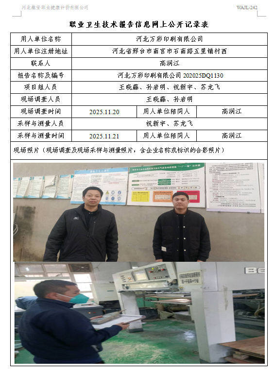 2025年河北万彩印刷有限公司定期检测