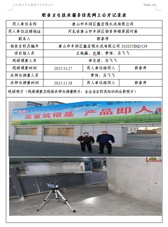 2025年唐山市丰润区鑫宏程水泥有限公司定期检测